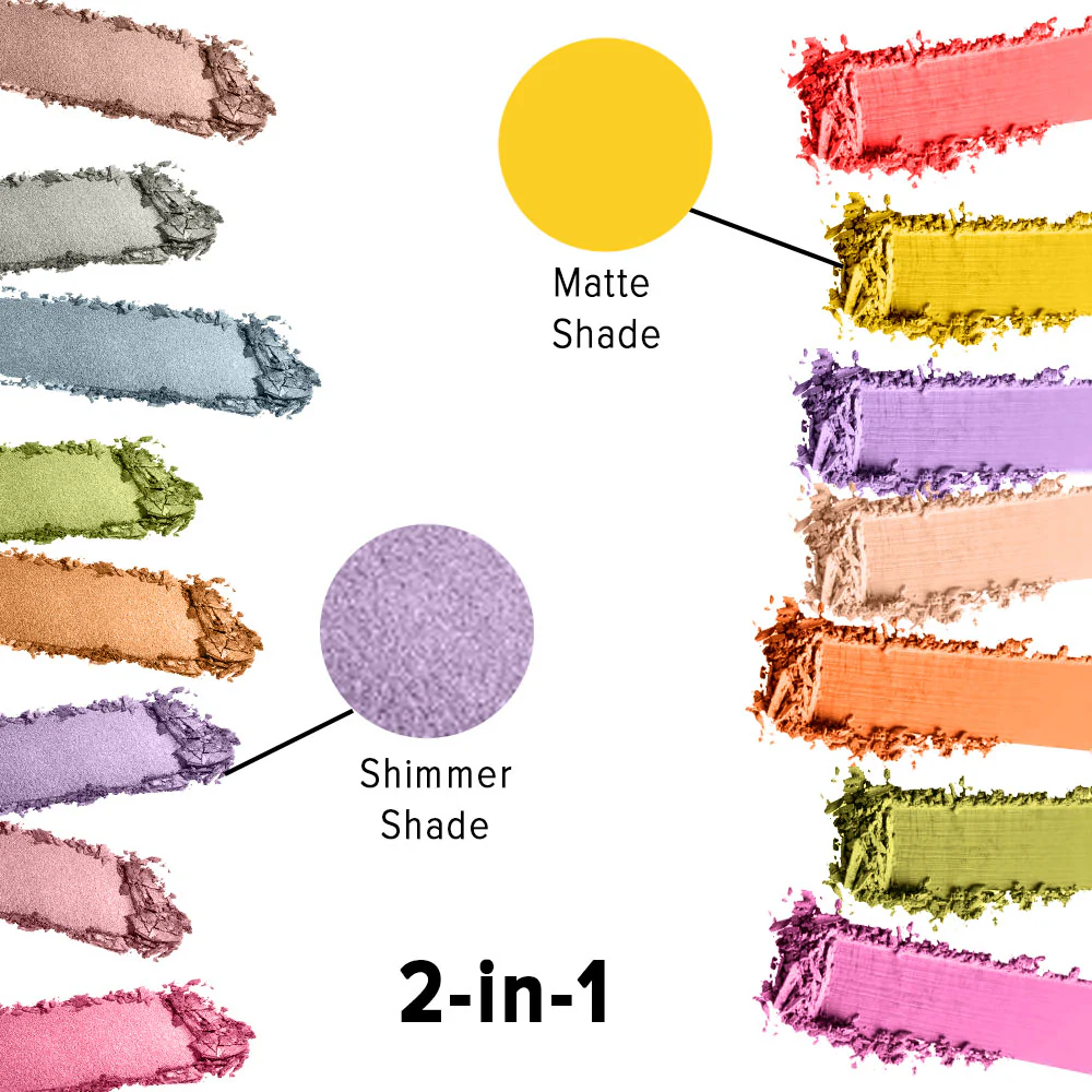 The super-saturated mix of matte & shimmer pigments can be layered, worn alone, or blended together to create your fabulous custom-made color. The long-lasting shadows are formulated with Mica to provide skin with a silky-smooth finish on the lids.