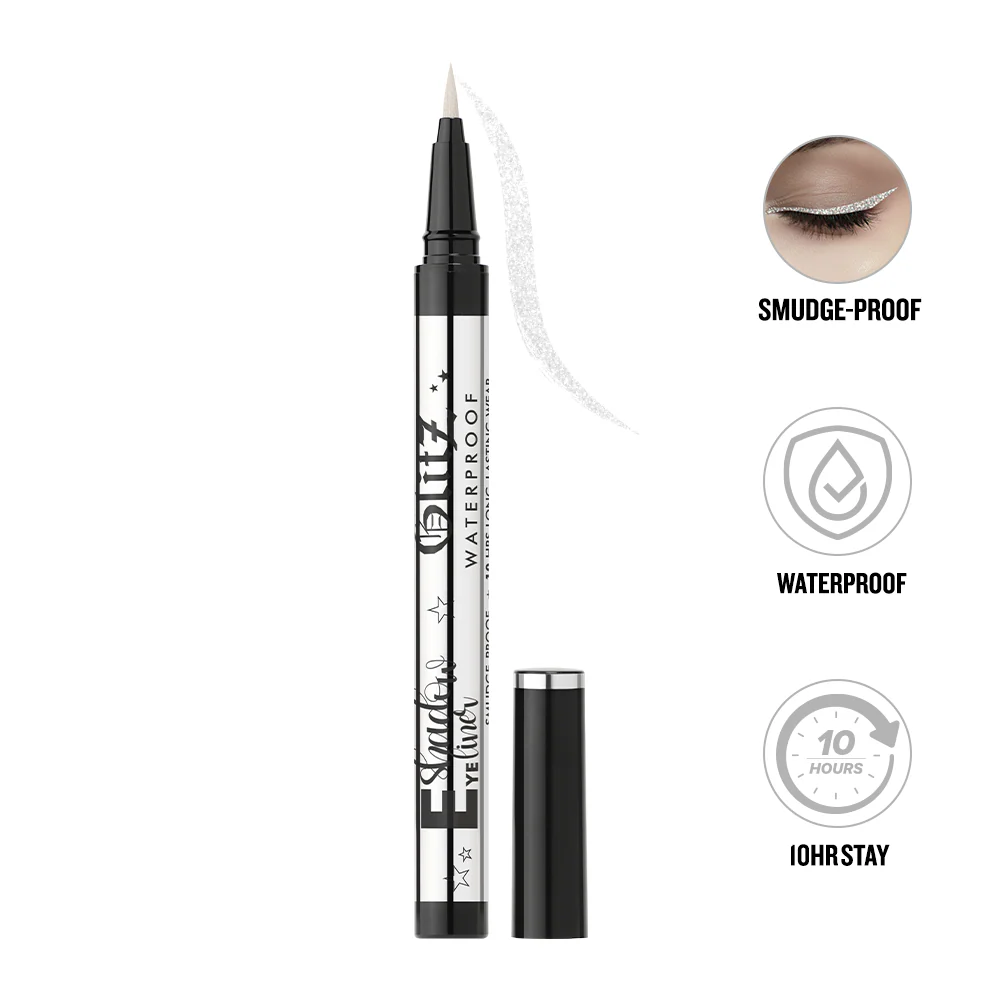 Gush over stunning eye looks! Now master them yourself with the Glitz Waterproof Eyeliner. Featuring a slender and precise felt tip with long-lasting and smudge-proof formula. Its deep intense color accentuates your eye makeup and adds a dash of dramatic beauty and glamour to them. The smooth tip applies the liner over eyelids in an even stroke and can be used for various looks you want to create. Its precise tip easily glides across the eyes, allowing you to create fine lines or sultry cat eyes with controlled application and intense color payoff. Its waterproof formula helps to keep your eye look on point all day long without fading or smudging. It comes in 1 different playful colors ranging from matte to shimmer.
